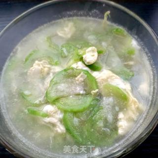 将煮好的丝瓜蛋汤盛出,即可享用。